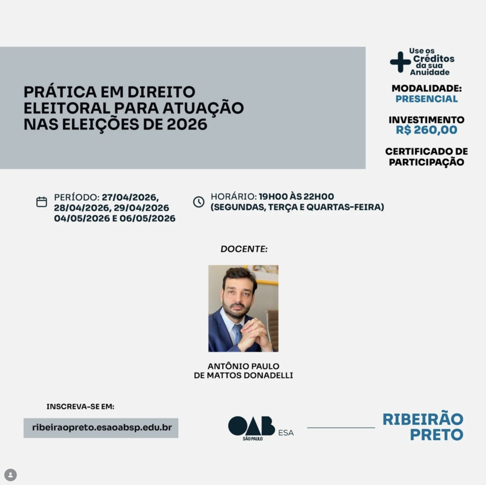 📙 ESA RP: Prática em Direito Eleitoral para atuação nas Eleições de 2026