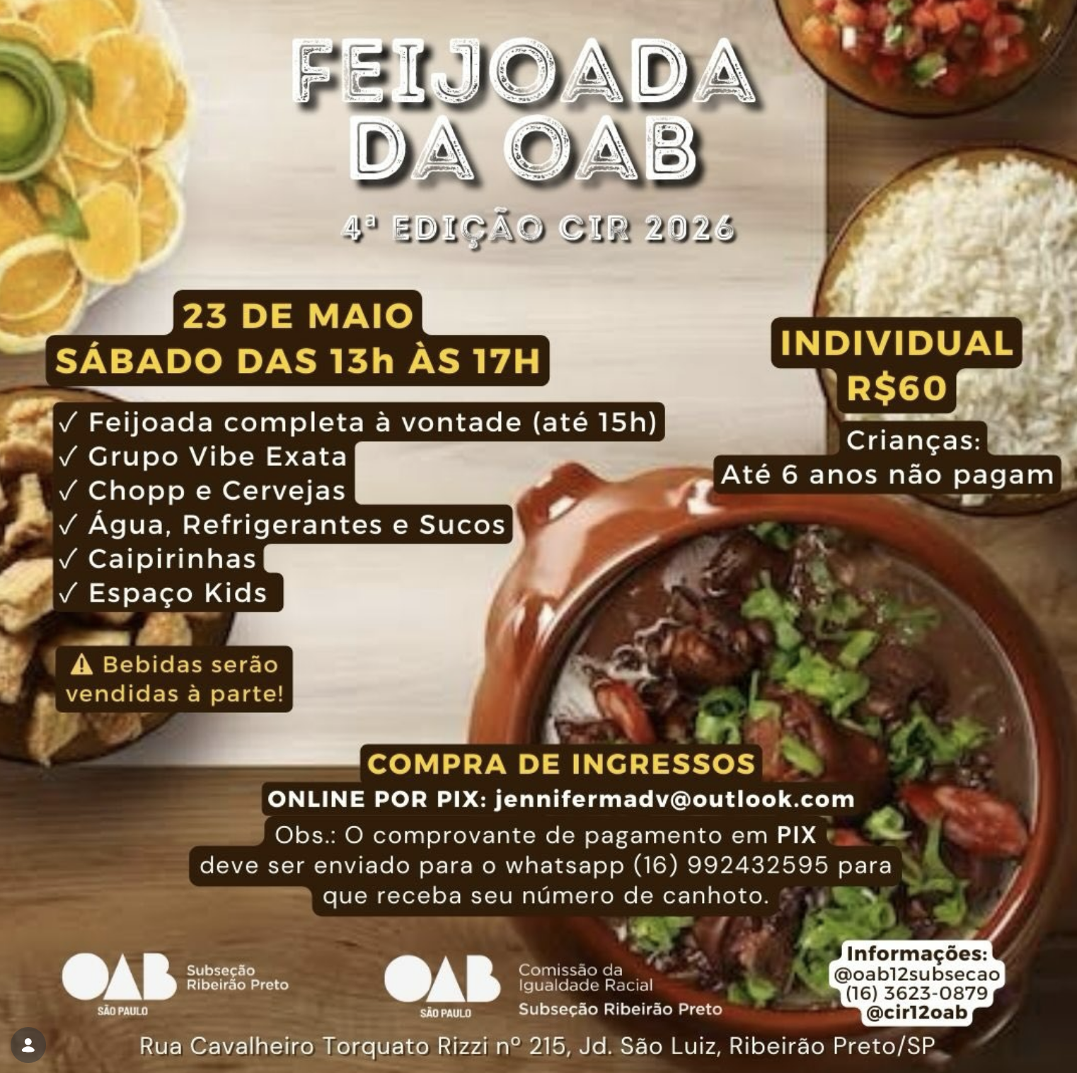 A FEIJOADA DA OAB RIBEIRÃO PRETO, 4ª EDIÇÃO REALIZADA PELA COMISSÃO DA IGUALDADE RACIAL, CHEGOU! 🫘