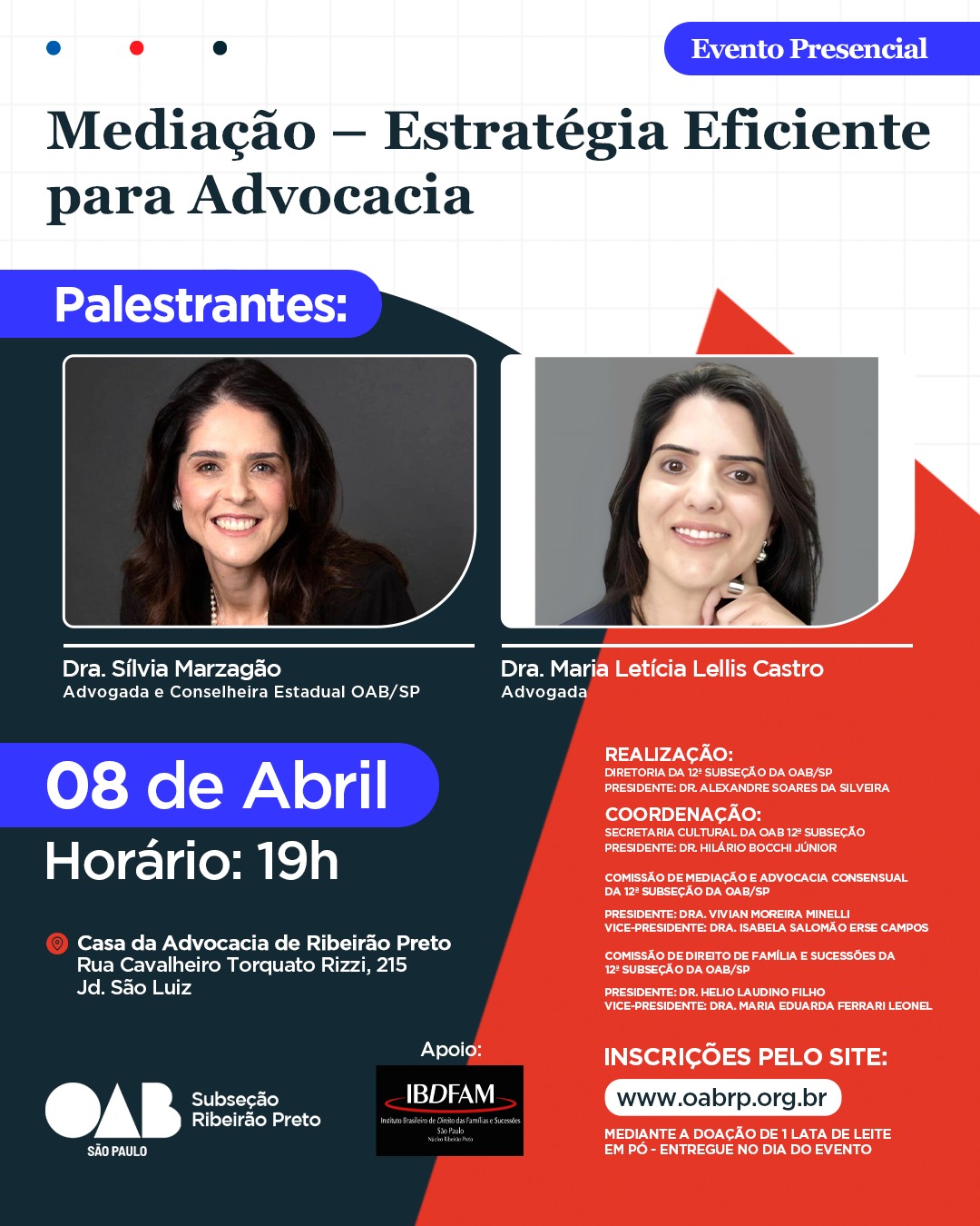 Local: Casa da Advocacia de Ribeirão Preto - Rua Cavalheiro Torquato Rizzi, 215 - Jd. São Luiz